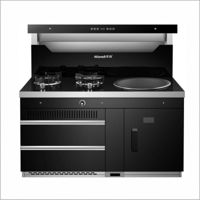 ★ 触摸开关,头部暖菜功能,集成灶下部分为消毒柜+水槽柜+柴火入口;