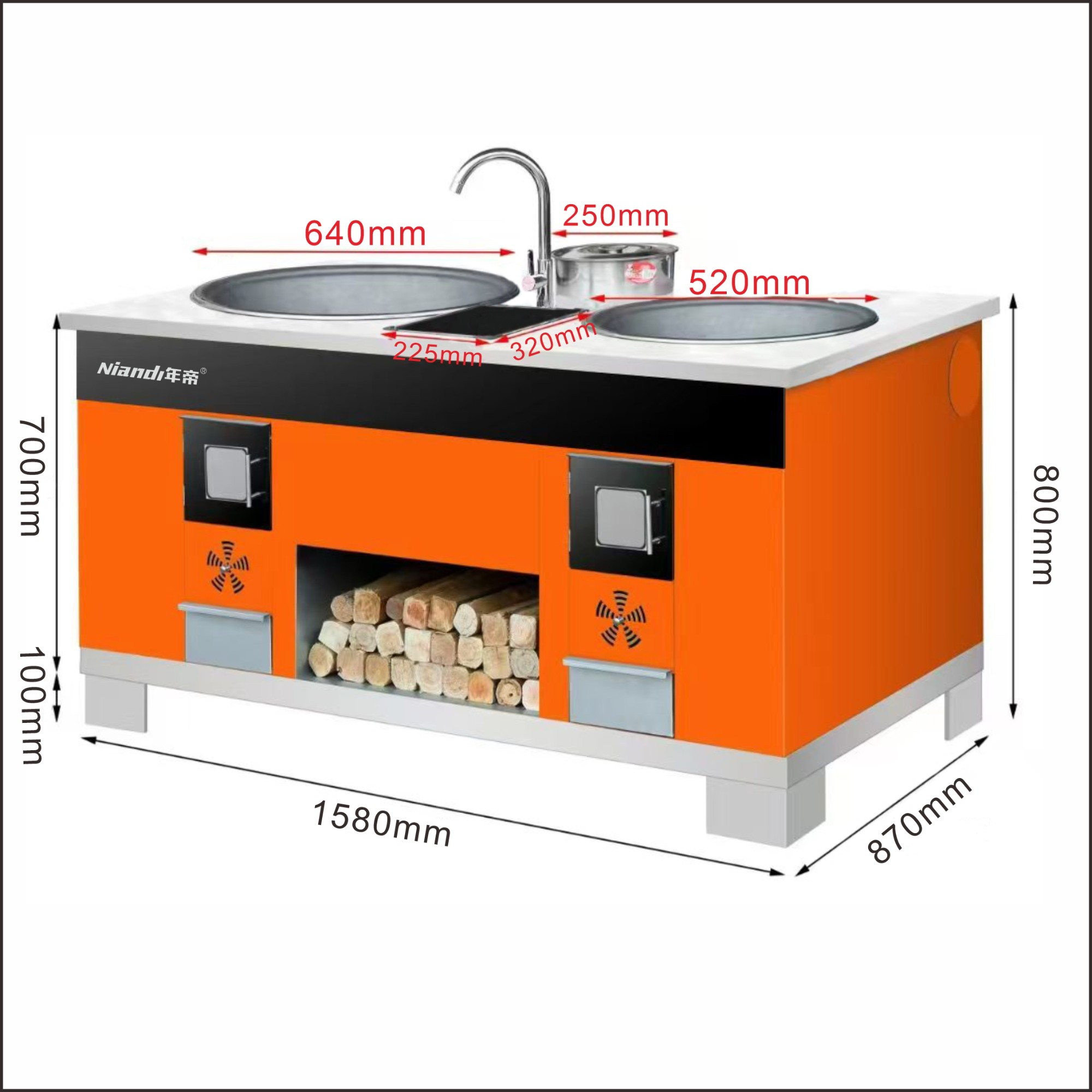 ★农村无烟柴火大锅灶,不用电不用气;★排烟出风方向可以任意选择定制:左侧/右侧/正后均可以定制出风管 ;★节能环保产品,烧柴时比普通砖土灶节约柴30%以上;★标配直径130mm共4.5米长不锈钢排烟管;★ 1.0厚大理石岩板台面,结实耐用;★彩钢板机身设计,颜色有橙色和灰色可选; ¥6280. 00